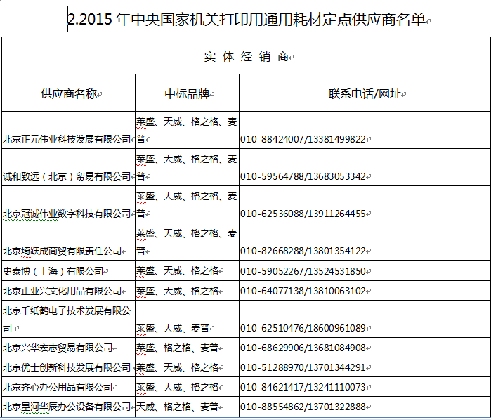 【资产采购】通用耗材定点供应商